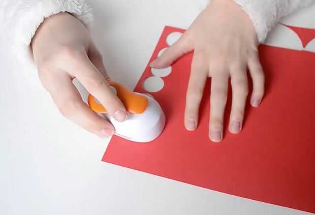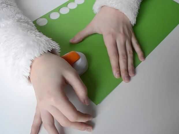 1) toma el golpe de palanca Fiskars medio círculo y comience a hacer círculos verdes. Hacer 4 círculos verdes.