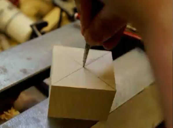 Paso 1: Encontrar el centro de un trozo de madera una marca hay un hoyuelo
