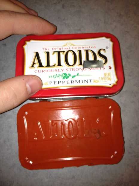 Finalmente, usted necesitará un embudo o un agujero hacia la empuñadura de la llave desde el exterior de su molde,. Este agujero debe hacerse también para alinearse con un segundo orificio en la lata Altoids. ADVERTENCIA: Lata Altoids puede calentarse mucho dependiendo de lo que está pasando su clave de réplica de