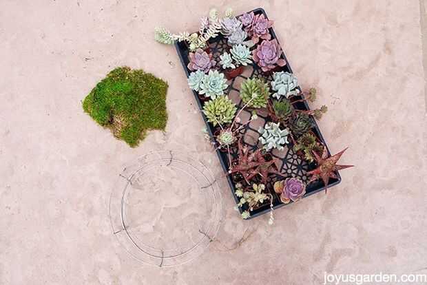 -> Una variedad de suculentas. He usado 16 del tamaño del bote de 2 pulgadas.