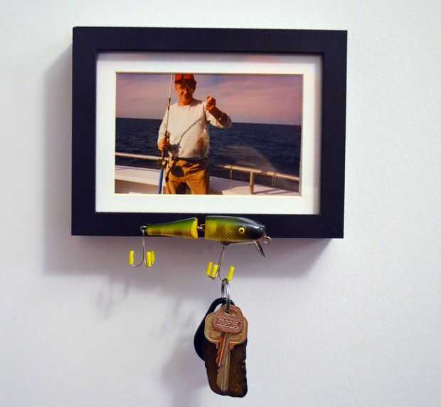 Este año elegí mis padres nombre del sombrero. Como que está años se pone más duro y más difícil de adquirir para él. Esto que fue inspirado como estaba limpiando mi armario de almacenamiento de información y me encontré una caja de los trastos viejos mi papá me había dado. Seleccioné un bonito señuelo grande que usamos para pescar con cuando era un niño y decidió hacer un llavero.