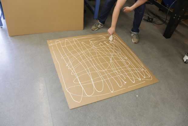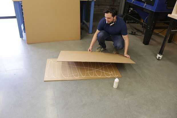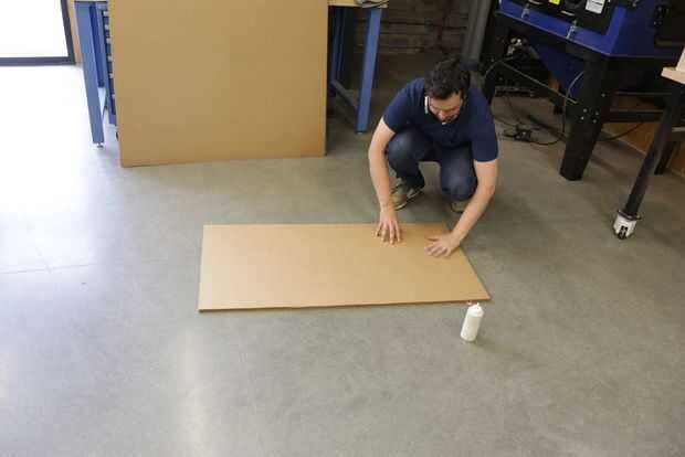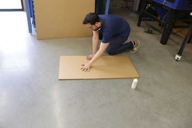 - Corta las láminas de cartón de 5 X 10 a tamaños manejables (no más de 48" en cualquier dimensión).