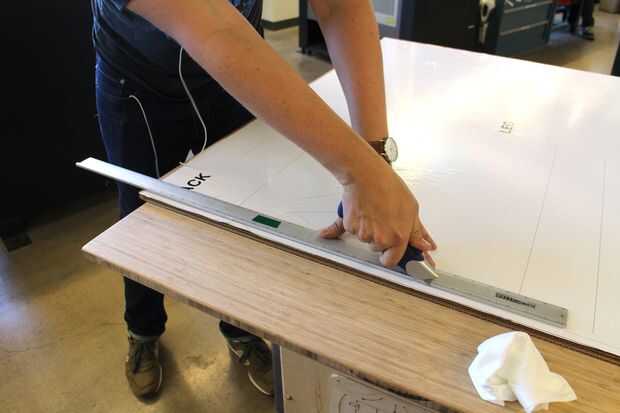 - Utilice una buena regla y un cúter afilado y cortar las piezas. Obtendrá cortes rectos con un disco fresco, así que para obtener los mejores resultados cambiar la cuchilla con frecuencia.