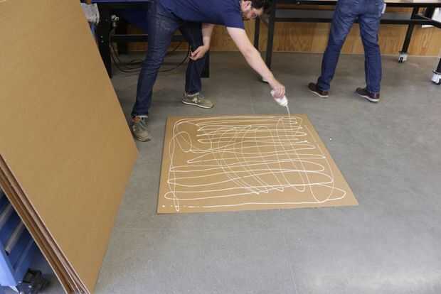 - Vaya Jackson Pollock con un tubo de pegamento en un lado de una hoja.