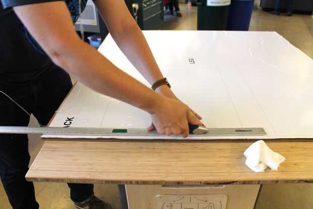 Utilicé un cortador del laser del Metabeam para la mayor parte de este proyecto, pero estoy demostrando aquí cómo hacerlo a mano. Es totalmente factible con un borde recto y un boxcutter con plantillas, sólo tarda más. Estos son los pasos para hacerlo a mano: