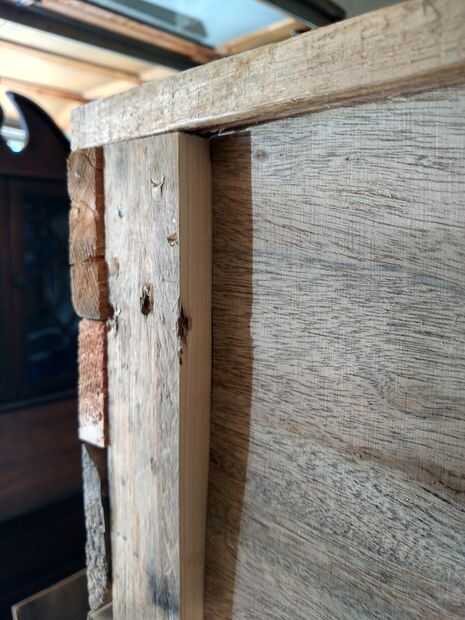 La mayor parte de este proyecto estaba hecha de palets. Tenía un trozo de OSB que usé para la parte trasera. Las paletas eran viejas y tienden a agrietarse fácilmente. Quería un Consejo sólido para la espalda ya que solo iba a enroscar directamente en la pared para el montaje. En retrospectiva, yo deseo empotrado en la pared un poco y añadió una cala francés o algo para facilitar el montaje, pero terminó trabajando bien como esta.