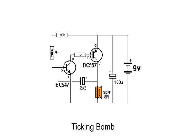 Qué tal hacer una falsa bomba de relojería sonido. Damm que va a asustar mal. Probar con este circuito de bomba de relojería en marcha.