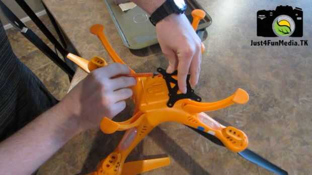 Posición y traza la placa base de la torsión de montaje sobre la base de lo quadcopter. Asegúrese que haya suficiente espacio para la cámara stock para ser enchufado y el interruptor a la función.