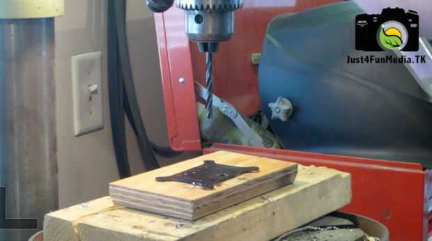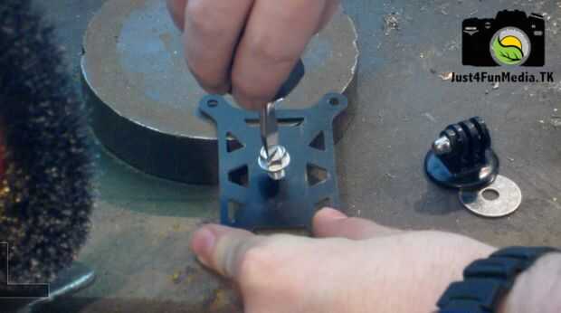 Perfore un agujero de pulgadas de trimestre en el centro de la placa superior de la montura de torsión. Utilice el tornillo de pulgadas de trimestre para roscar el agujero en la placa superior. Si la cabeza del perno demasiado grande para caber entre las placas necesita acortar con un esmeril.