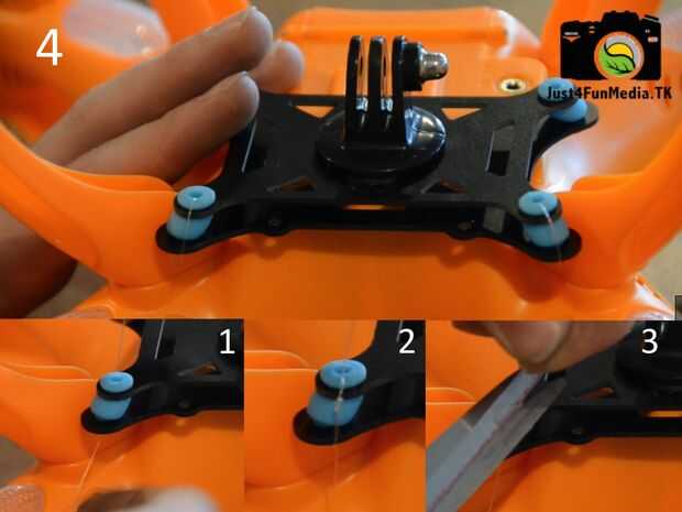 También os adjunto un tabla de surf seguridad de montaje y un cable de captura al lado de lo quadcopter para asegurar que la GoPro dice conectado, incluso en el caso de un fallo completo de la montura de torsión.