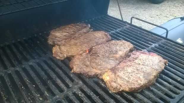 Añadir la carne directamente sobre el fuego. Voltea la carne después de aprox. 60 segundos para filete más grueso esperar unos 2 minutos.