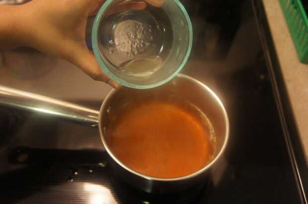 * Coloque una cacerola a fuego medio y agregue el agua y el jengibre rallado.