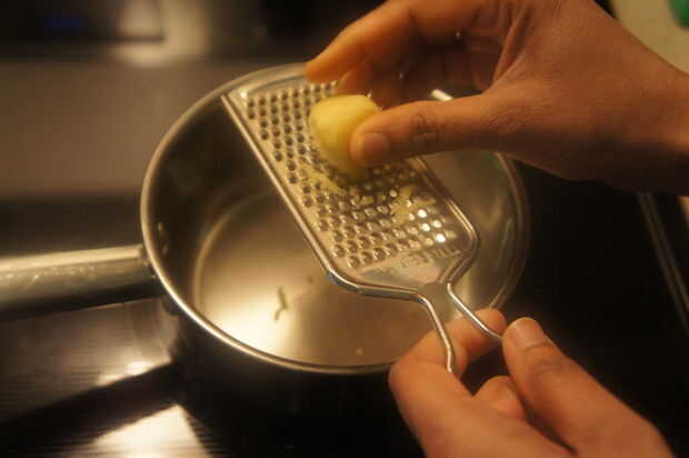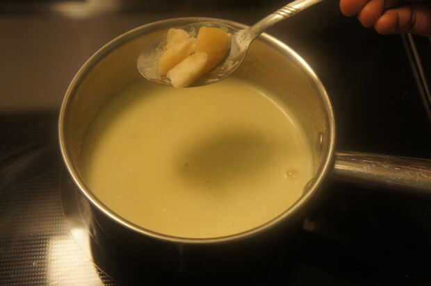 * Coloque una cacerola a fuego medio, añadir rallado jengibre y poca agua a hervir (jengibre fresco a veces puede cuajar la milk.so hervir en agua para evitar que)