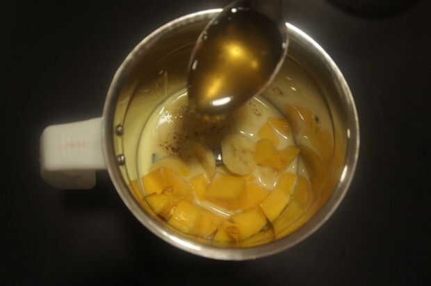 * Ponga todos los ingredientes en una licuadora y mezcle bien. (Añadir más leche/agua según consistencia preferida)