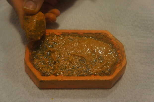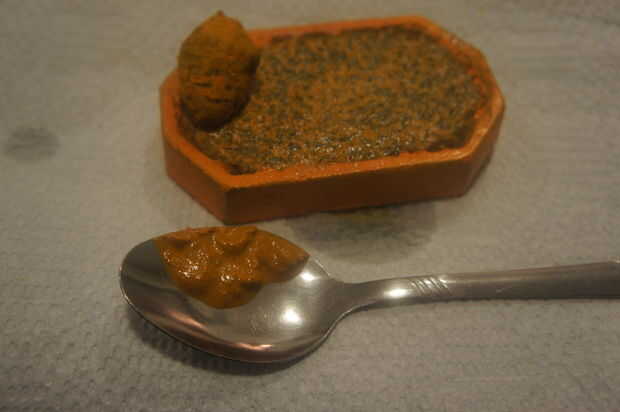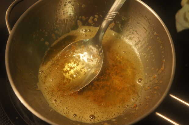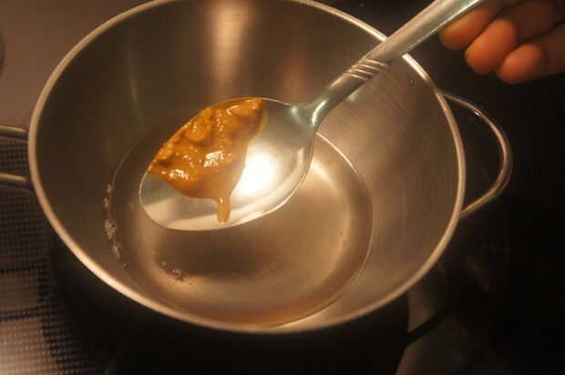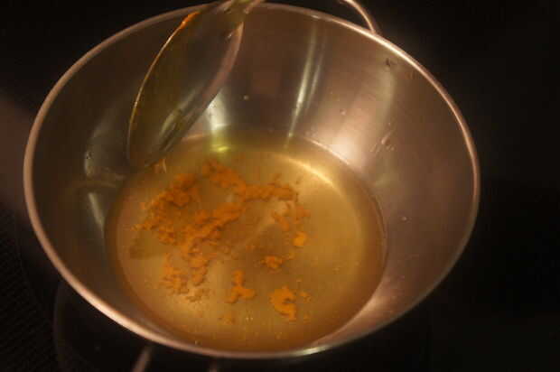 * Coloque una cacerola a fuego medio y añadir el aceite de coco recién molido pasta de cúrcuma.