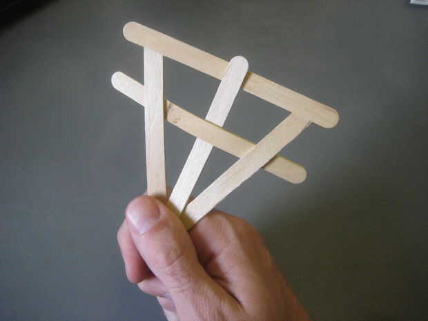 esto es fácil de construir y sólo utiliza 5 palitos. Explota cuando golpea el suelo. Un popsicle stick mi descanso pero generalmente no sucede.Paso 1: Esta es la parte fácil Solo mira la imagen.Paso 2: Esto es cuando se pone duro Asegúrese de constan