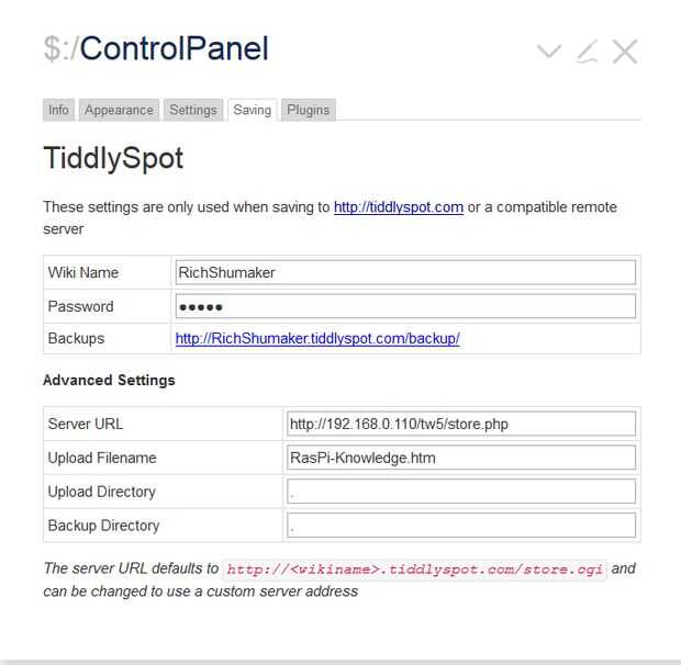 Abra el archivo TW5 en el RasPi desde otro ordenador y actualizar los datos del Panel de Control.