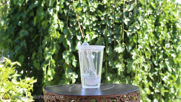 Ahora para mostrar por qué esta demostración es tan arriesgada, pongo uno de estos contenedores en una taza llena de agua tibia, luego consiguió realmente muy lejos.
