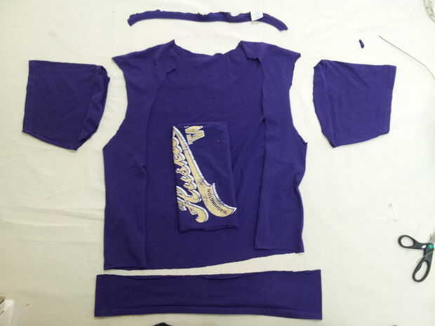 Cortar la camisa púrpura en un chaleco.
