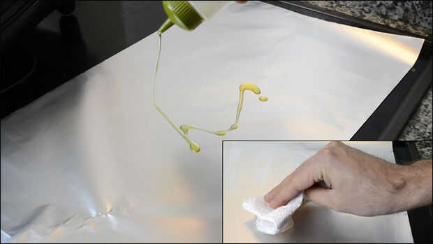 Tome un pedazo de papel de aluminio y añadir unas gotas de aceite Si quieres.