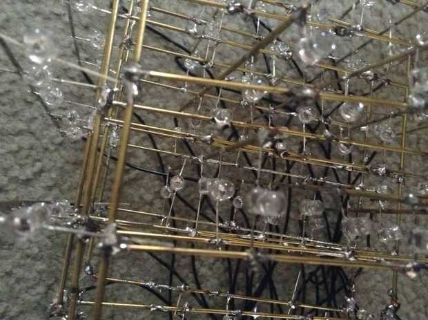 Después de instalar las columnas de la cuatro esquina entonces debe soldar la Plaza próxima a los LED por encima de las que esté sólo con la primera capa a. Esto hará que la segunda capa del cubo. Después de haber hecho esto a todos cinco cuadrados, necesitará conectar el resto de las columnas moviendo de un lado a otro, su hace más fácil en usted.