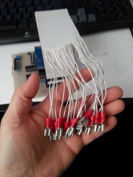 A continuación montar conectores de espada masculina en cada pierna cobre y montar conectores hembra a los 30 pines en el cable IDE.
