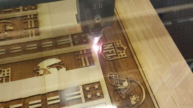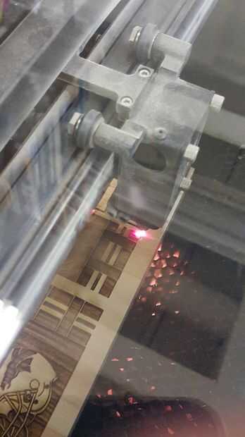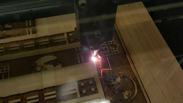 Ahora podemos empezar a grabado. Fui por delante y poner mi losa grande de pino en el grabado y mi archivo para grabar en las paredes del pecho. Los valores de uso son similares a mi otro trabajo donde tengo (potencia 100% 100% de la velocidad 500 PPI) y una densidad de imagen de 6. * Utilizar estos mismos configuración de los mejores grabados en la madera contrachapada del abedul