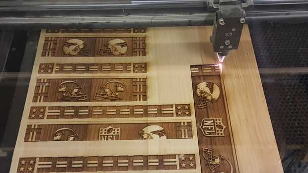 Después de toda la madera es grabada y corte es es hora de montaje.