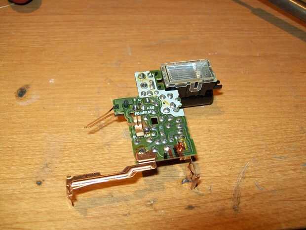 Inicio con una fugi cámara desechable con flash. Abrir hasta exponer la placa del circuito y la tapa de descarga por arco hacia fuera. Debe verse así.