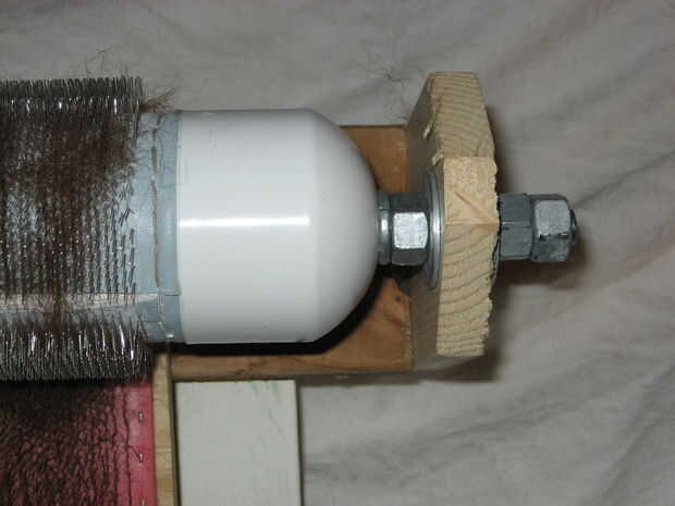 Antes de empezar a montar el tambor, usted tendrá que pensar en la orientación de los dientes en el paño cardado.  La parte superior del tambor se volverá hacia usted.  Usted puede orientarlo para que sea derecha o izquierda la manivela.  Mina es operado con la mano izquierda (y la lana hartos de la derecha), pero si quieres hacerlo al revés, planee con anticipación y asegúrese de que los dientes estén en la dirección correcta).