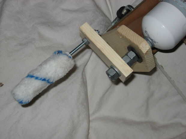 Hacer lo mismo con la tuerca de 1/4", una arandela, el titular de asa, una arandela y otra tuerca (para el mango). Apriete.