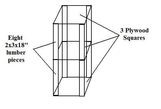 1. utilizando el 2x3x8s extra que sobra, corte ocho 18" longitudes. Así que ahora usted debe tener ocho 2 x 3 x 18" piezas. Son su marco interno de su condominio de kitty. También la utilización de la restos de 12" ancho madera contrachapada tienes 3 12" longitudes de corte. Así que ahora tienes tres plazas madera contrachapada de 12 "x 12".