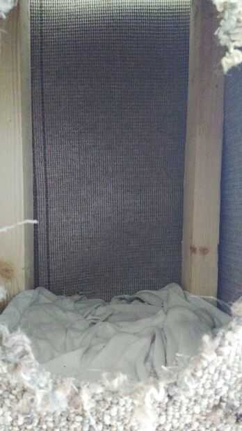5. para hacer "paredes", encontré que si simplemente enrolle la alfombra completamente alrededor de la estructura (pegado y clavado para mantenerlo bonito y tenso--han alguien ayudar con este proceso como la alfombra es un poco difícil de trabajar con) y luego cortar dos agujeros en él que son lo suficientemente grandes para su Fig. ir a través de la señalada "frente a"... eso es todo! Instante las paredes :)