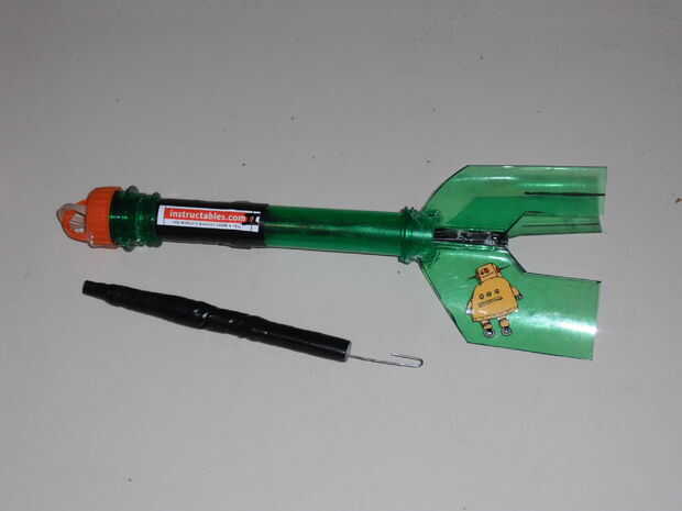 Armar la versión original aproximadamente una media hora y jugado con él de manera demasiado a admitir. Finalmente levantó rasgó, y ahora he decidido crear una versión nueva y mejorada. Esta nueva versión cuenta con algunas novedades, casi todas ellas están diseñadas para añadir distancia. A partir de la ojiva, permite ahora gomas retráctiles. Esto también permitirá múltiples bandas de goma ser utilizado donde creó demasiada inestabilidad en el diseño original. El nuevo cuerpo es un poco más, y me di cuenta de una manera de ayudar a recortar un poco hacia abajo su circunferencia y mantener más redondos que antes. Las aletas de la cola también están mucho más grandes crear en última instancia, más estabilidad y más spin. Finalmente, por un comentario del usuario ahora también tengo una herramienta para lanzar el cohete con para evitar accidentalmente golpeando con los dedos en ocasiones.