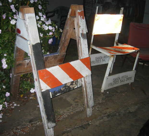Los caballetes se hicieron de otro tipo de barrera del tráfico "caballete" y aparecen con una barra transversal extraíble en la parte superior. No vi lo que parecían los travesaños.