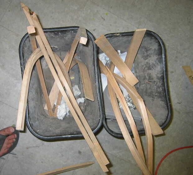 La parte de vapor fue bien, pero que no era tan bueno con la flexión. Quería la madera muy gruesa para doblar alrededor del radio que quería. Así que rompí un lote de madera antes de llegar la pieza que necesitaba. La segunda foto muestra algunos de los fracasos.