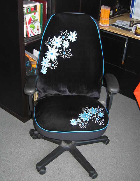 Asiento de coche cubiertas vienen con todo tipo de decoración festiva. La mía es de terciopelo con flores de color azul.