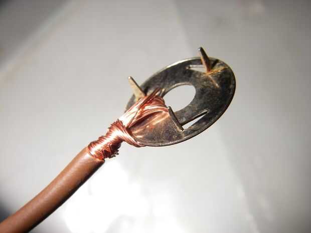 Envuelva el extremo del cable corto alrededor del perno y empuje en la superficie inferior interna de la clavija.