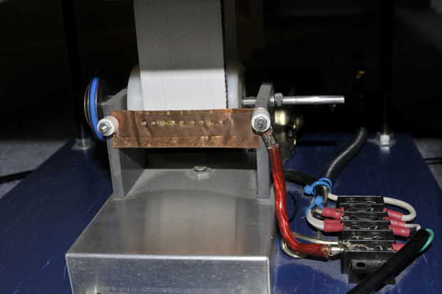 a continuación agregue el motor y polea, y luego el peine en la parte posterior del rodillo, más tarde cuando se pone el cinturón en puede doblar el cobre suave del peine para ajustar el espacio entre el rodillo y los pasadores, closser consigue transferir la carga más.