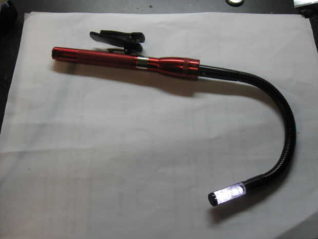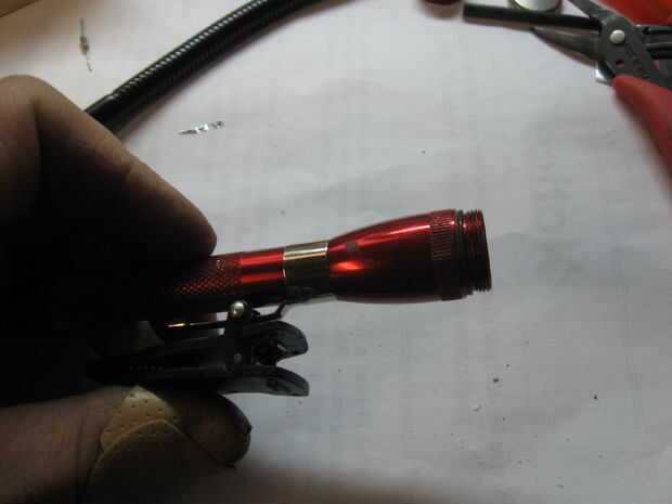 Ahora han reemplazado el conjunto de lámpara y lente original con LED y un cuello flexible. La linterna debe funcionar como originalmente lo hizo la Maglite.