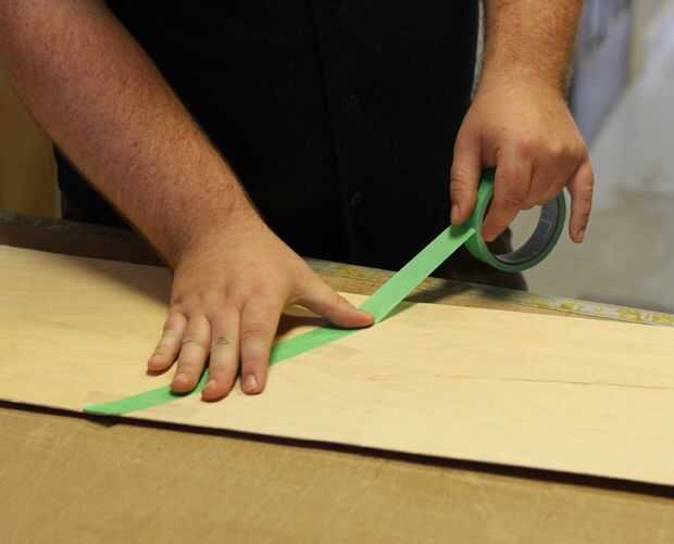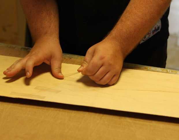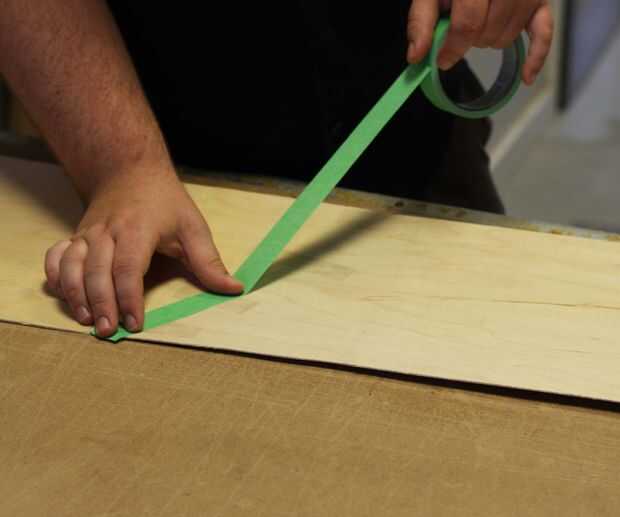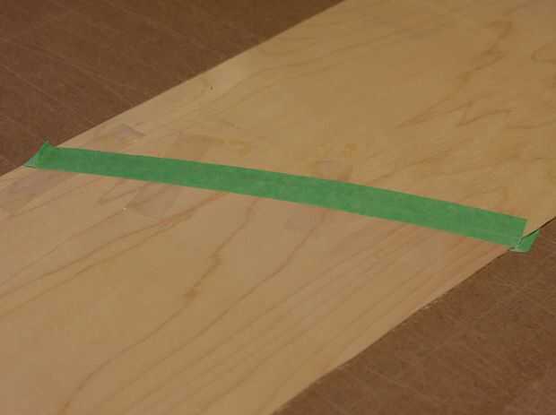 Una vez que todas las hojas se aparearon para arriba a 60" de largo, hemos pegado el borde diagonal y les grabó junto al igual que las hojas de grano cruzado.