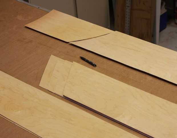 2) escalone las juntas entre cada capa. Si tiene todas sus articulaciones en el mismo lugar para cada capa de la Junta, inevitablemente será más débil en esa área. Se puede ver en las fotos que la articulación está en un lugar diferente a lo largo de la longitud de cada hoja de chapa, y también tapa el ángulo de cada uno antes del prensado. Esto ayudará drásticamente la fuerza de su cubierta después de que ha sido presionado.