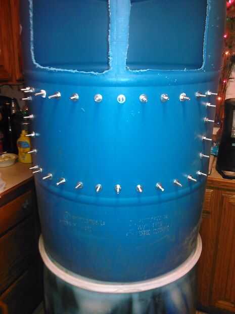 Retire la tapa del barril, dejando un pequeño borde en la parte superior, a la cama grow sentarse cómodamente y utilice una regla para marcar dos casillas en el tercio superior del cañón, nuestros son cerca de 8 pulgadas por 8 pulgadas. Utilizar un taladro, para taladrar un agujero en una esquina de la zona va a cortar para que pueda obtener su hoja de rompecabezas pulg. Asegúrese de hacer esquinas redondeadas para evitar que el cañón su integridad. Elimine las rebabas sobrado después del corte. puede ser escogidos con la mano o un cuchillo de bolsillo funciona bien también.