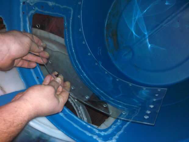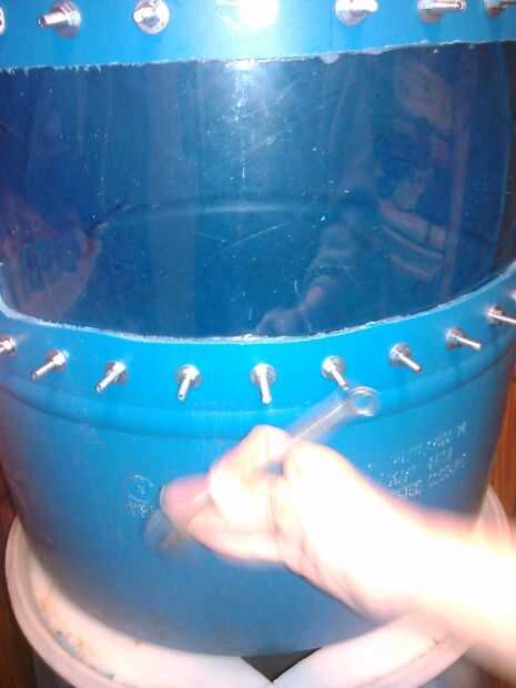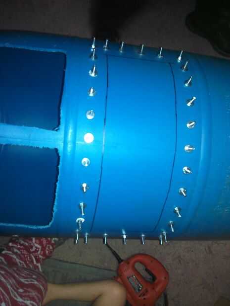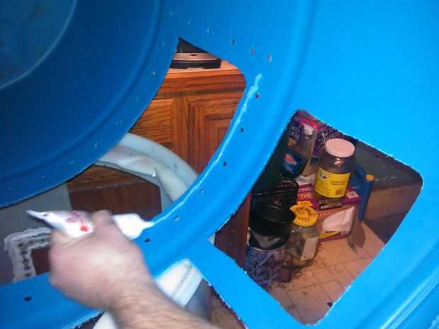 marca cañón por la ventana, 1" dentro de los tornillos, quitar todos los tornillos (y ventana que se emperna dentro del curso) y utilizar su cuchillo para eliminar las rebabas del interior del cañón de la perforación. una vez que todo esté suave, utilice el taladro hacer un agujero a lo largo de su corte marcado y, a continuación, su rompecabezas para recortar la ventana de marcado. Quitar las rebabas, (con su navaja de bolsillo es más fácil) y ahora el silicio. Coloque un cordón de silicona en la parte superior e inferior de los agujeros de perno dentro del barril y vuelva a colocar cuidadosamente el plexiglás utilizando el mismo método que antes de añadir los pernos. iniciar en el medio y su forma de trabajo hacia fuera en los bordes, haciendo que los dedos. una vez que están todos, coge una llave de cubo de 1/4" y apriete los pernos en un círculo y apretar un poco a la vez. Preparese para trabajar su manera alrededor de al menos 3 veces apretando poco a poco.