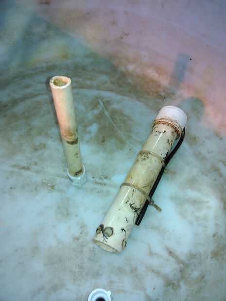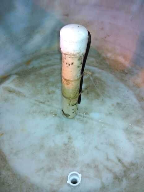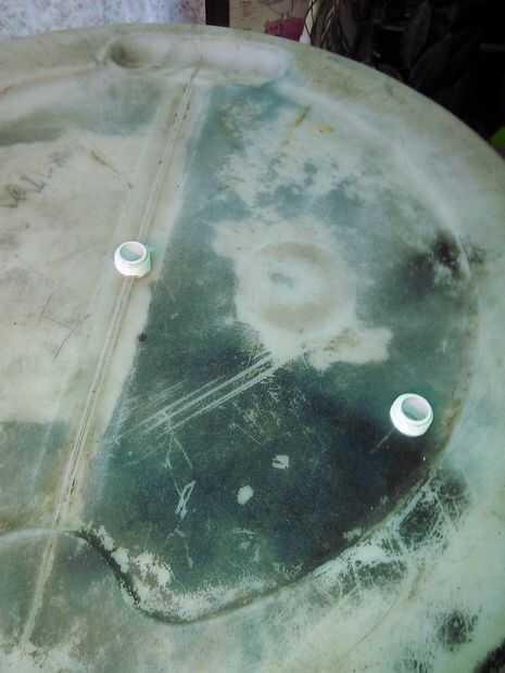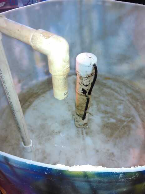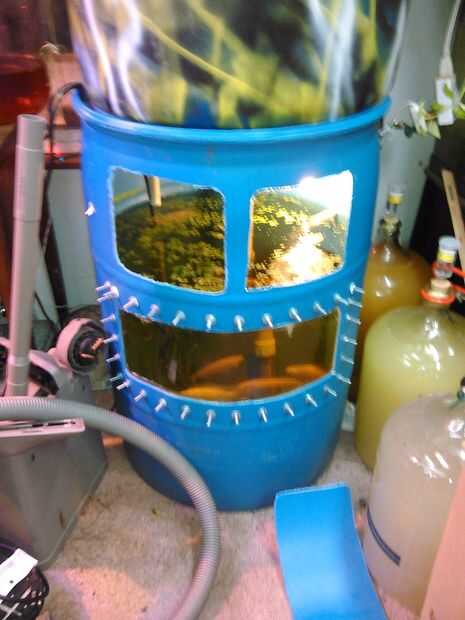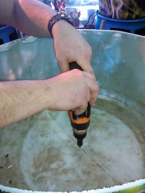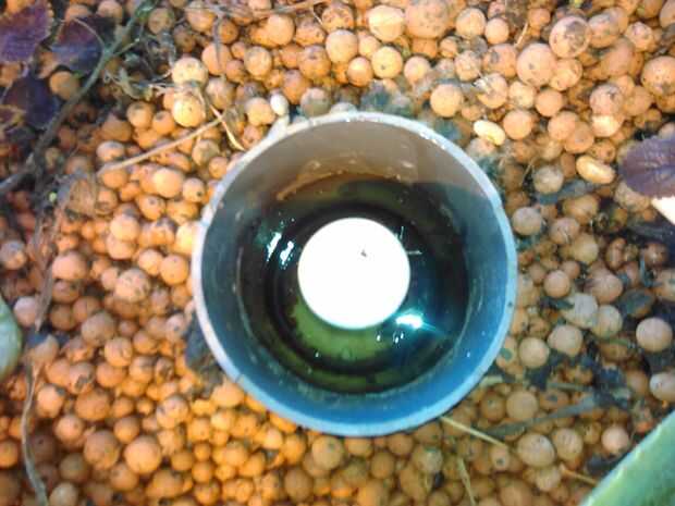 Cortar la parte inferior 12"(un tercio del cañón). usted necesitará usar una sierra de orificio de 3/4" y corte dos agujeros en la parte inferior de esta pieza. una cerca en el medio para el drenaje, así como uno ubicado hacia un lado, para la alimentación de la bomba. Cada uno de estos agujeros deberán taladrarse, (con rosca) con un grifo de 3/4". Del hilo de rosca en los adaptadores macho de 1/2" desde la parte superior y entonces añadir los adaptadores hembra en la parte inferior de la cama, configurar su sifón de campana, media guardia y entrada la tubería en el hoyo en el centro de la cama y la bomba se coloque debajo en la conexión que ha creado en el lado. la cama de los medios de comunicación se llenan de arcilla expandida, o grava y algunas plantas en! Puede que necesite una válvula de bola para controlar el flujo de agua en la cama así.