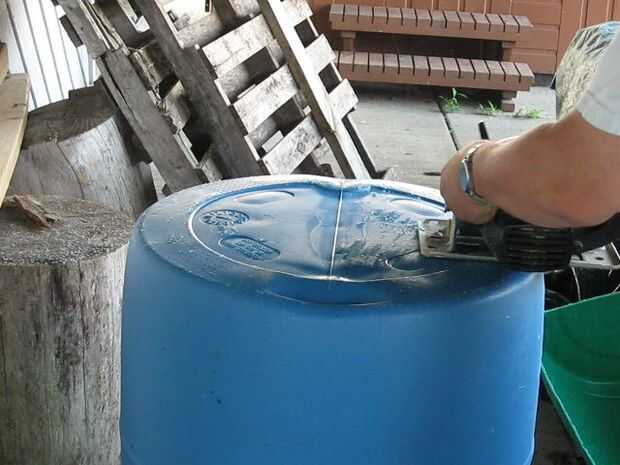 Ahora corte los barriles a la mitad. Cortar el barril con una sierra de mano o sierra eléctrica (tenga cuidado de no lastimarse durante el montaje).