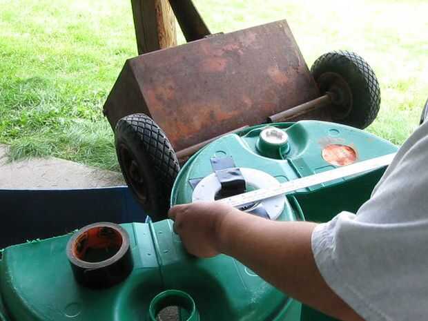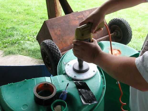 Taladro grande a través de barriles utilizando el separador de brida como su guía (utilizar un 4 1/2" serrucho, Sierra de marquetería o rotozip).