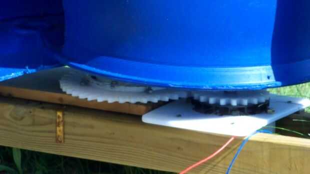 Aquí es un vídeo realizado por dolnick. Tomó el diseño básico y había adaptado con una impulsión de correa en lugar de una impulsión del engranaje. Él también utiliza un eje de acero en lugar de un eje de PVC y sus barril montajes de soportes de tubería y puntales de madera de 2 x 4. También utilizó un motor de salvado en vez de un alternador automotriz. Este fue un trabajo excelente y ahora con éxito alimenta una cabaña de vacaciones de fin de semana funcionando luces y ordenador portátil.