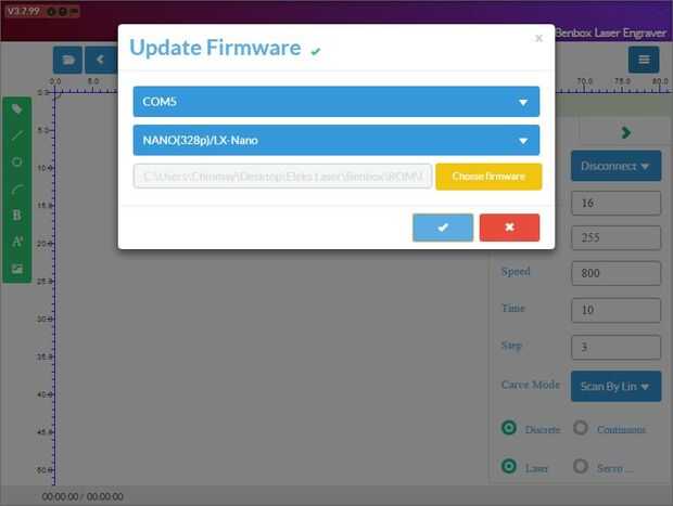 6. actualizar el Firmware: se encuentra el archivo de firmware dentro de la Benbox -> carpeta ROM. Después se apareció actualización exitosa una marca de verificación verde.
