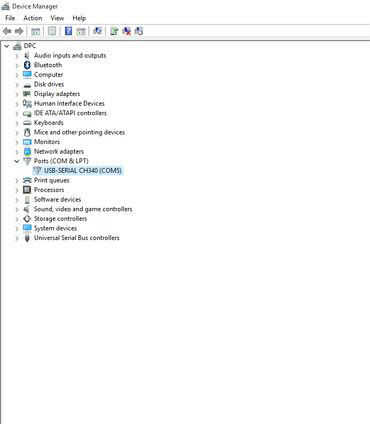 Vaya al administrador de dispositivos -> puertos, usted encontrará "USB SERIAL CH340 (COMXX). Anote el Nº de puerto COM